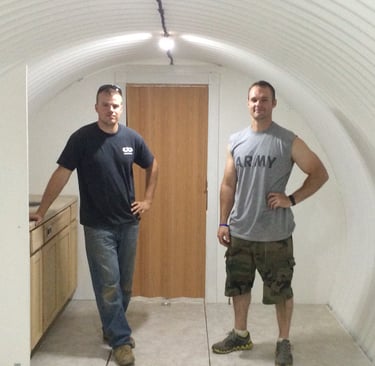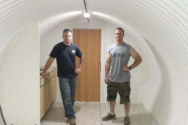 Whatws including in our pricing? These move in ready bunker comes with blast resistant/bullet proof hatch, staircase with airtight bulletproof door, small decontamination room with shower, entry vault door, which enters into the finished interior (walls, ceiling, floor, lights, outlets) with underfloor storage, bathroom with shower, kitchenette, and a living space. The air systems are set up with our inhouse designed tamper resistant air intake and exhaust system accompanied by a Swiss ANDAIR NBC air filtration system with manual back up blower. This bunker also has an emergency quick escape with hidden steel blast hatch equipped with a hydraulic lift to assist with opening when obstructed by a heavy object. All floor plans are 100% customizable. Our turnkey bunkers are set up with backup power systems (Generator, Batteries, Solar Energy). We can stock all bunkers with needed supplies such as food, water, medical, entertainment, and furnishings at request.