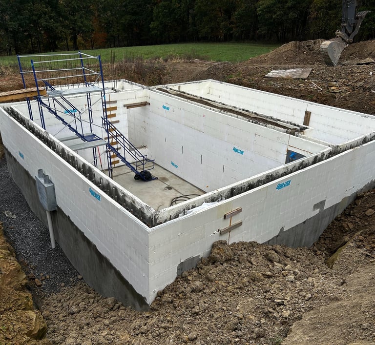 Insulated Concrete Form (ICF) construction is one of the most durable and energy-efficient building methods available—making it ideal for underground bunker applications. Each ICF wall is formed using interlocking insulated blocks filled with reinforced concrete, creating a monolithic structure that offers superior strength, insulation, and longevity compared to traditional concrete or steel.